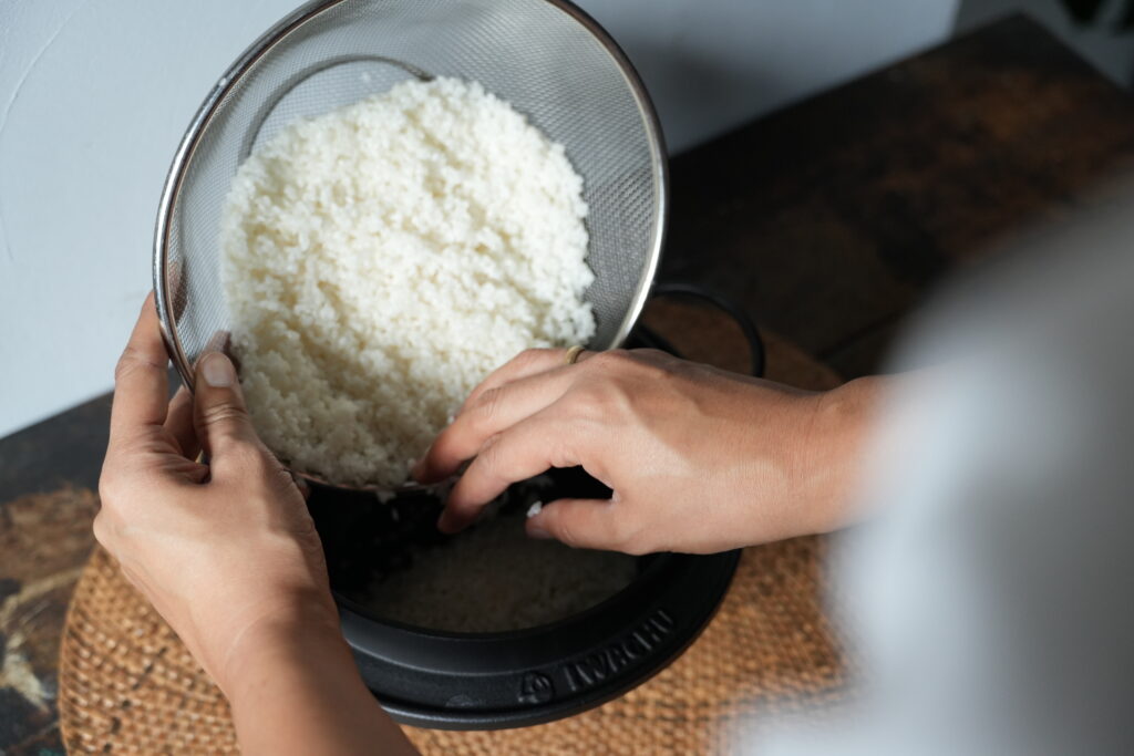 うまみを閉じ込めたごはんは、口に入れた瞬間やさしくほぐれ、